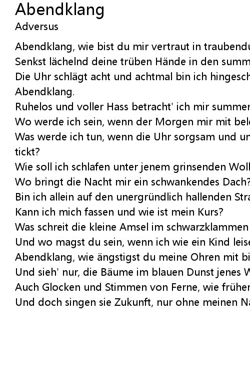 | Abendklang, wie ngstigst du meine Ohren mit bitter raschelnder Bl tterstille? | |