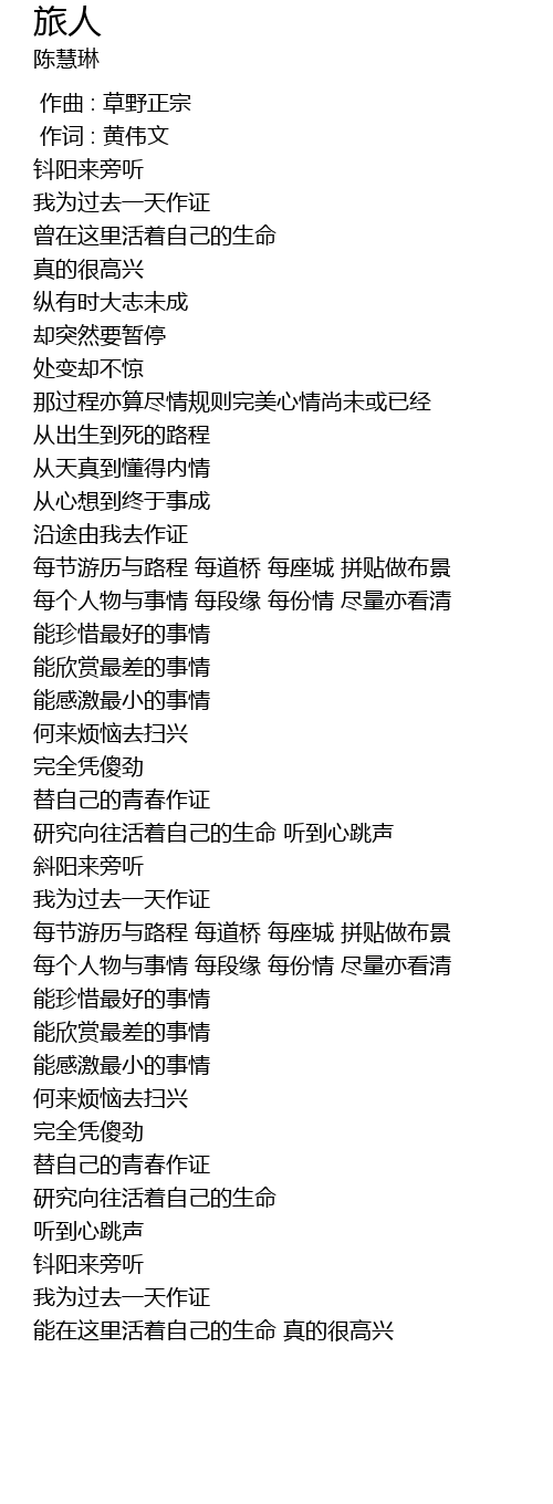 | [02:18.00] | 每节游历与路程 每道桥 每座城 拼贴做布景 |