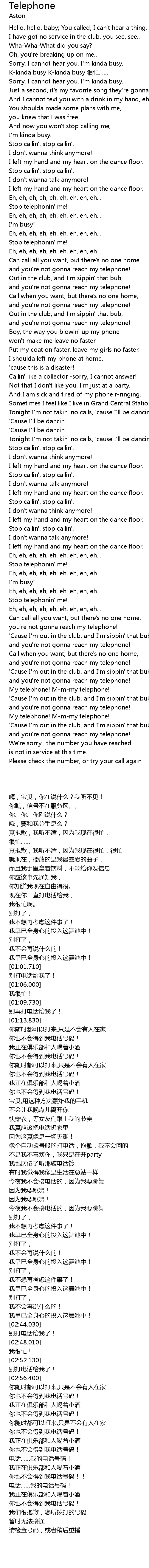 | [00:06.700] | Hello, hello, baby You called, I can' t hear a thing. |