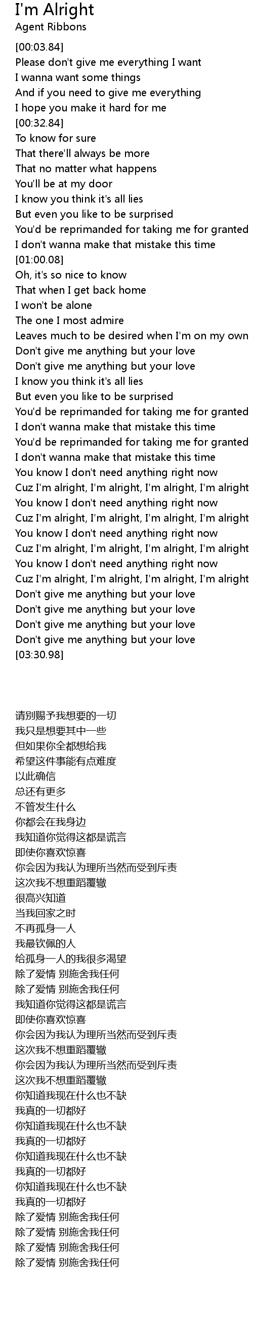 Cuz I'm alright, I'm alright, I'm alright, I'm alright |