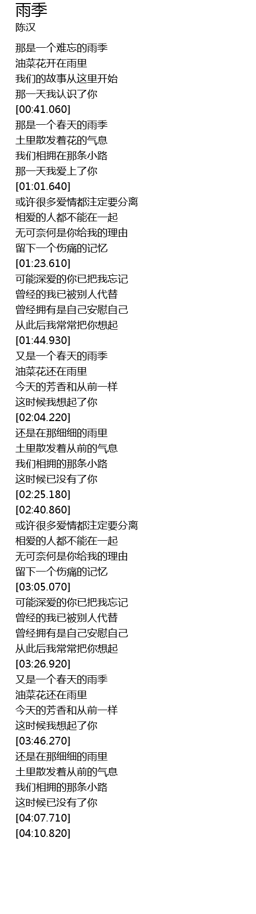| [00:42.420] | nà shi yí gè chūn tiān de yǔ jì |