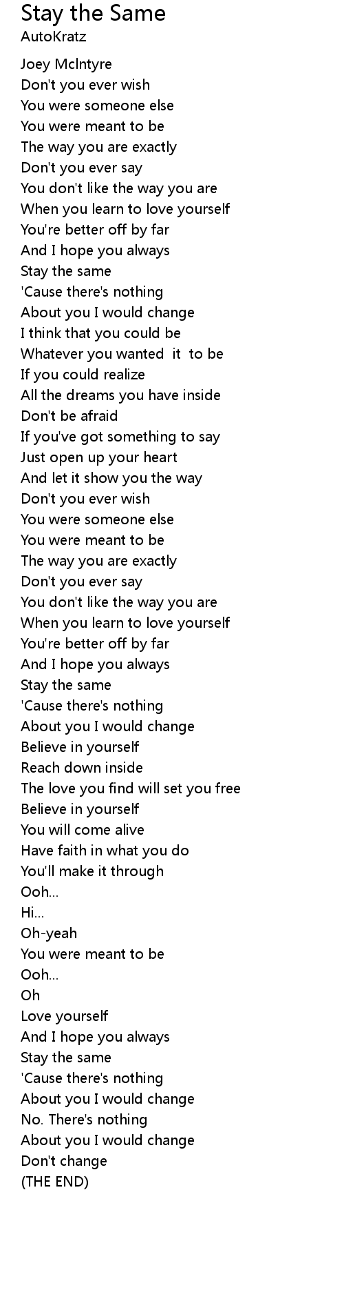 Stay the Same 歌词