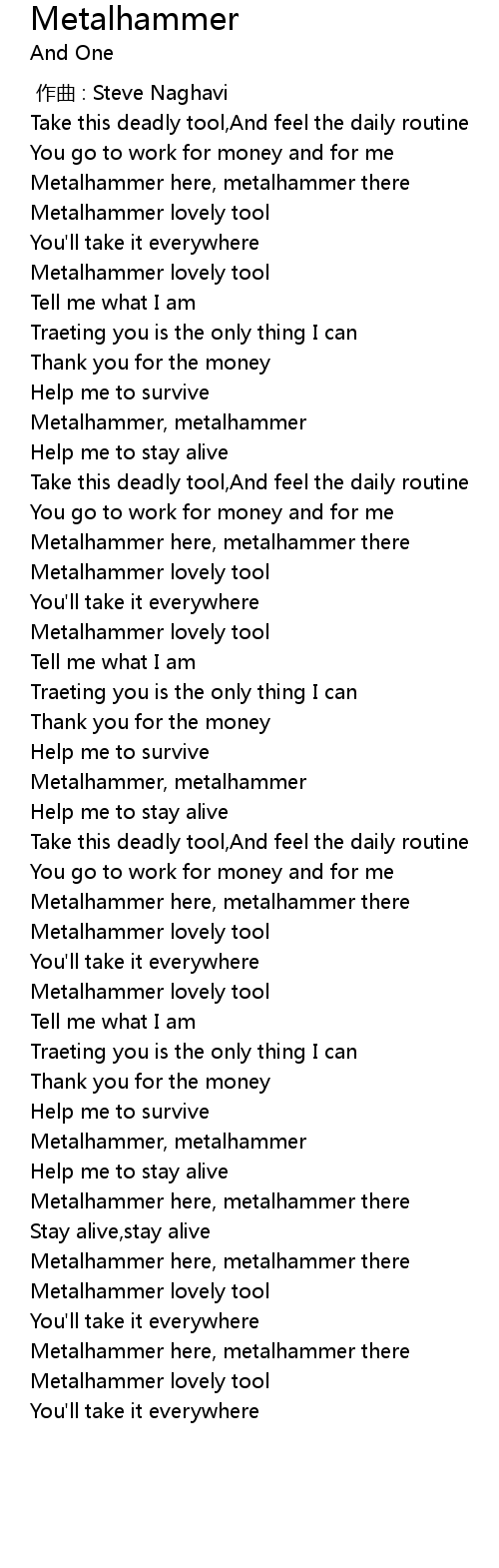 | [03:44.82] | Metalhammer, metalhammer |