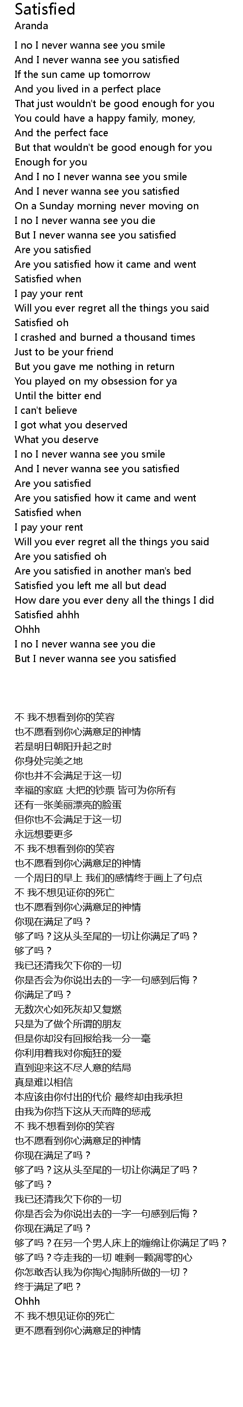 And I never wanna see you satisfied |