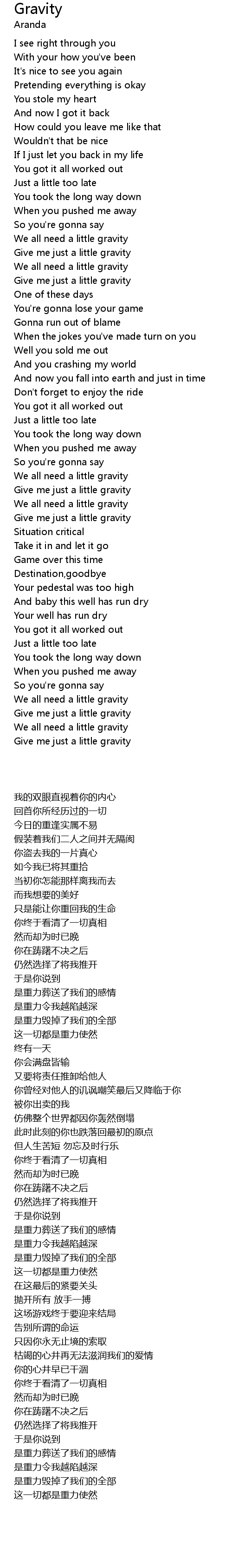 Give me just a little gravity |