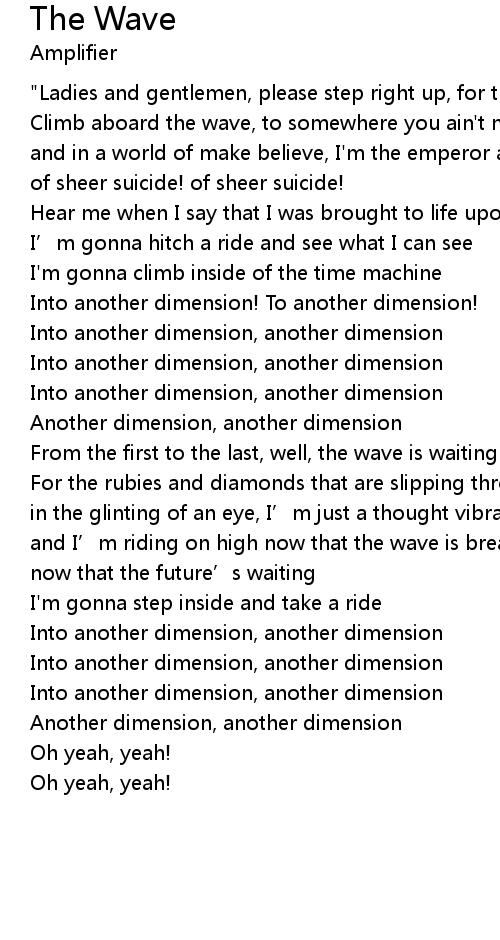 | Climb aboard the wave, to somewhere you ain' t never been | |