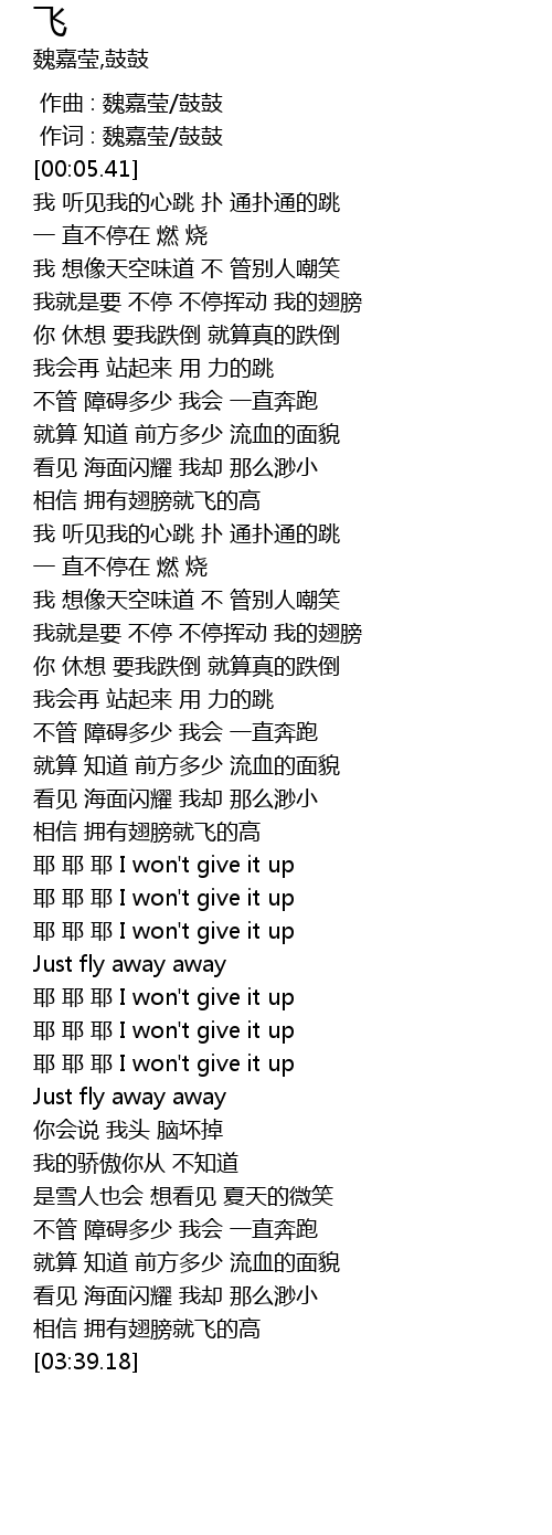 | [00:30.85] | 我就是要 不停 不停挥动 我的翅膀 |