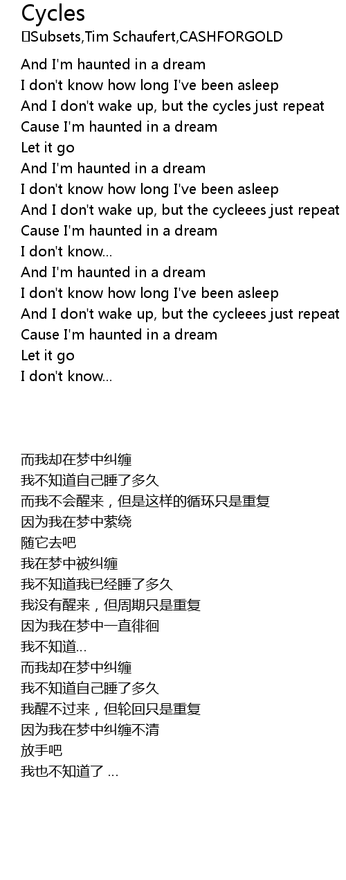 And I don't wake up, but the cycles just repeat |