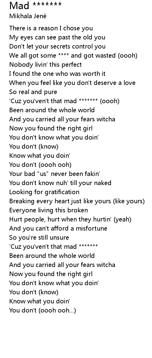 'Cuz you'ven't that mad ******* |