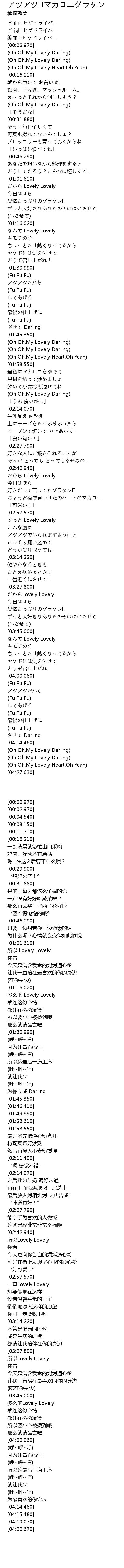 | [02:47.460] | 今天是向你告白的焗烤通心粉 |