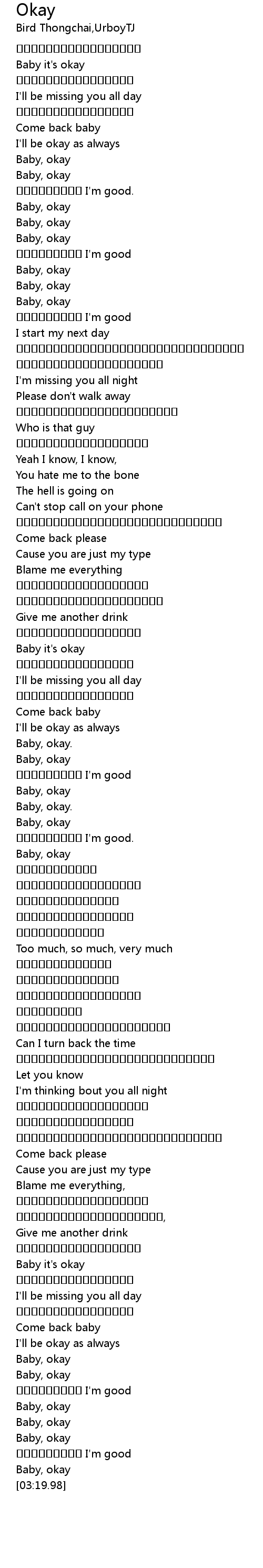 | [00:24.89] | ไม่เป็นไร I'm good |