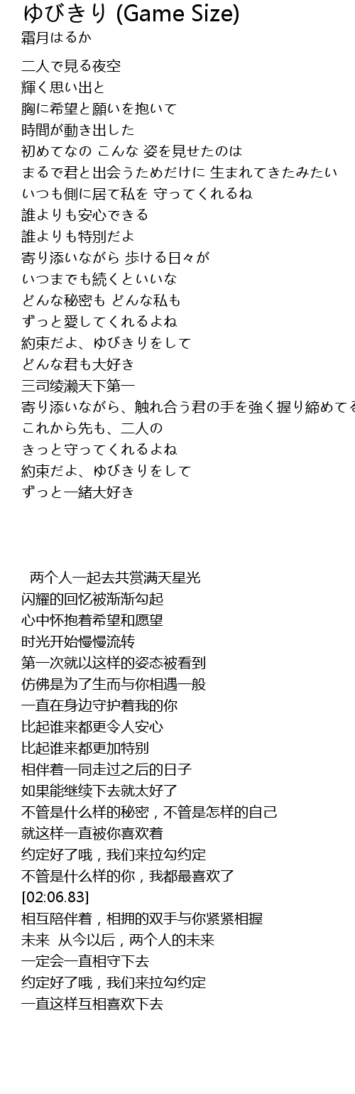 | [02:39.37] | 約束だよ、ゆびきりをして |