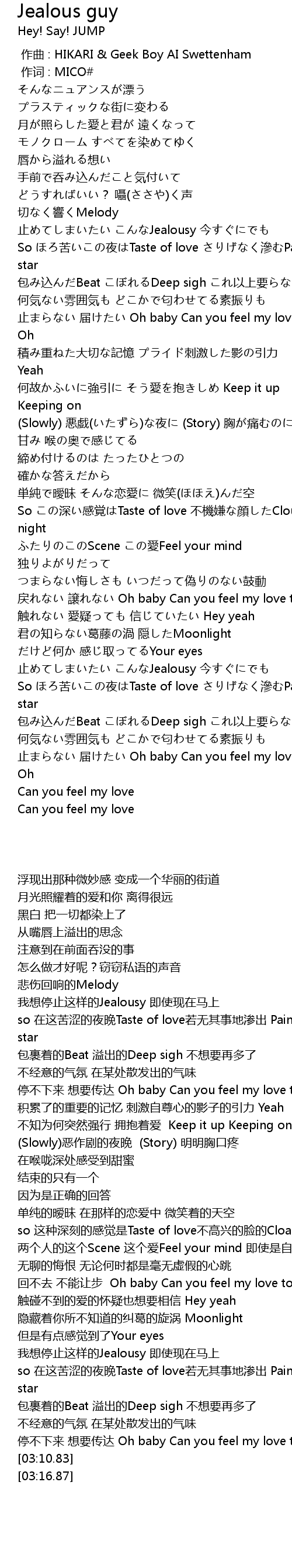 | [02:34.33] | zhi Jealousy jin |