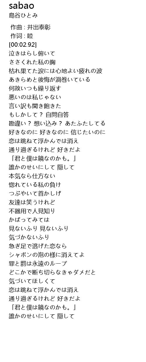 | [03:04.61] | シャボンの泡の様に消えてよ |