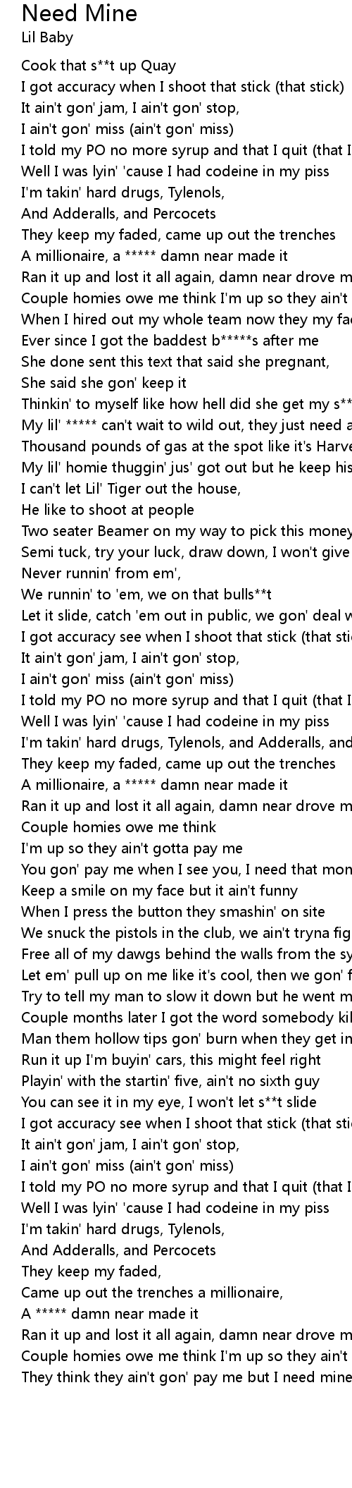 | [02:39.43] | They think they ain't gon' pay me but I need mine, I need mine |