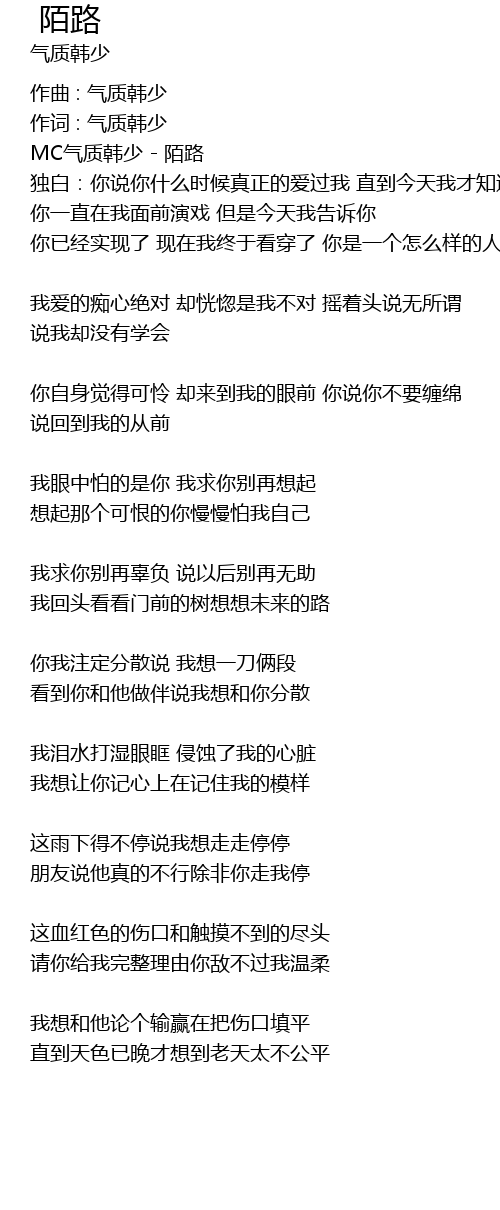 | 你自身觉得可怜 却来到我的眼前 你说你不要缠绵 说回到我的从前 | |