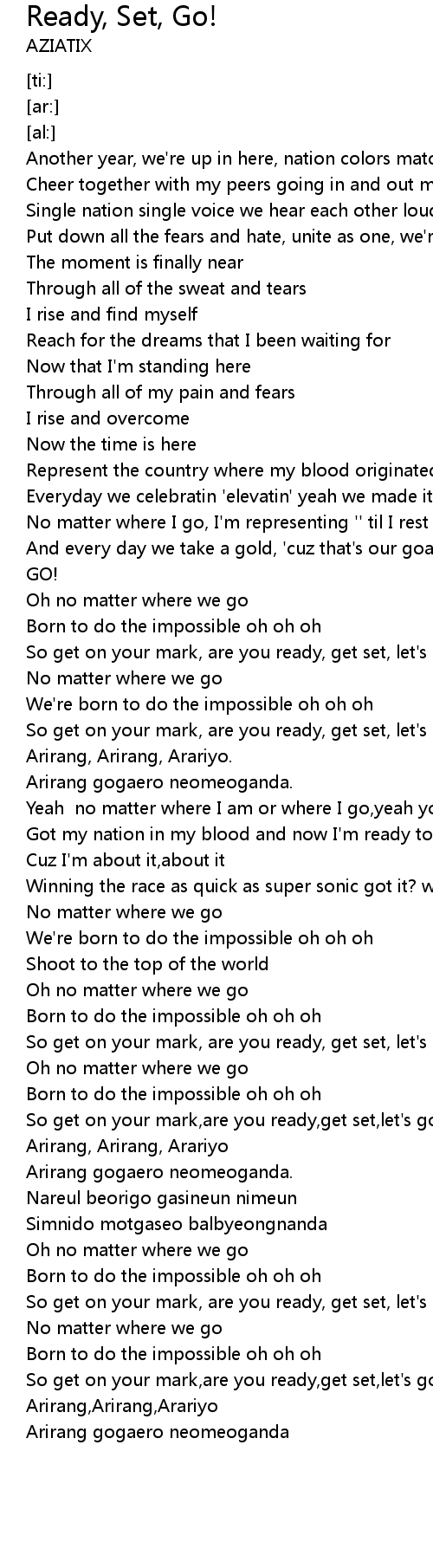 And every day we take a gold, 'cuz that's our goal, now ready? set, GO! |