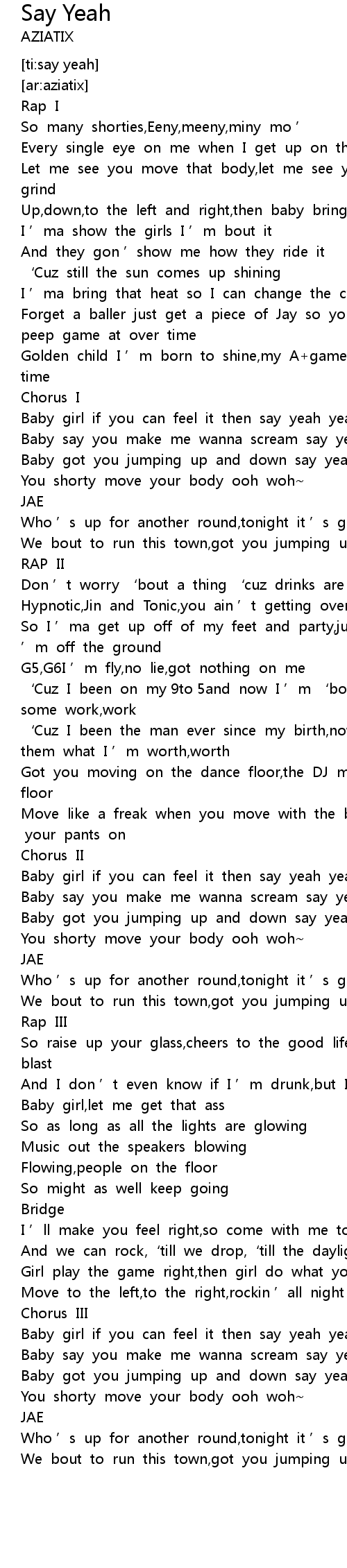 | [03:15.80] | Baby got you jumping up and down say yeah yeah |