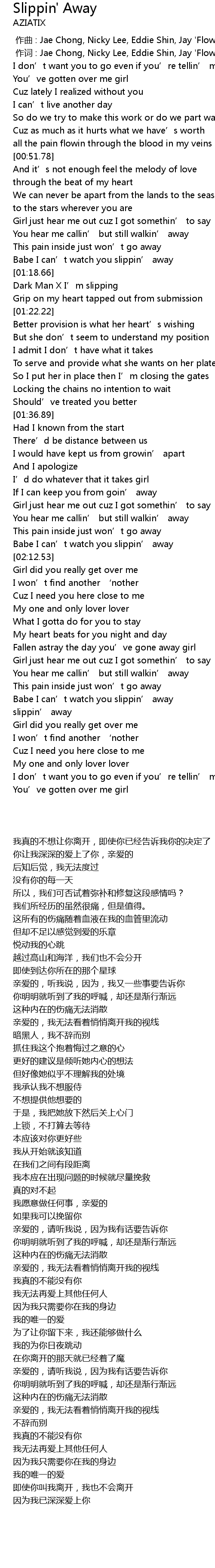 | [03:00.84] | Babe I can' t watch you slippin' away |