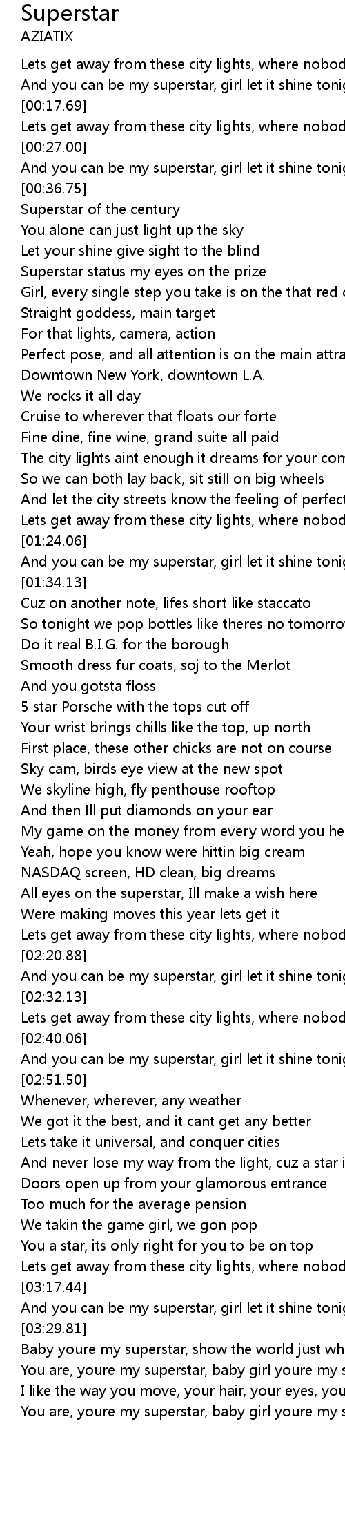 | [03:36.44] | You are, youre my superstar, baby girl youre my superstar |