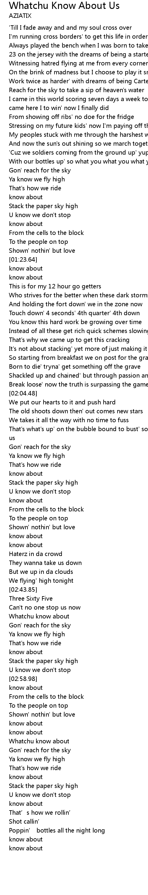 | [02:23.48] | U know we don't stop |