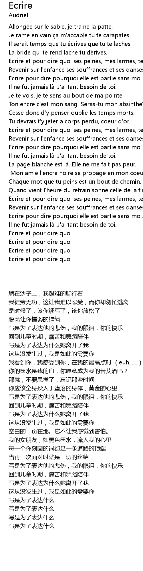 | [00:34] | Ecrire pour dire pourquoi elle est partie sans moi. |