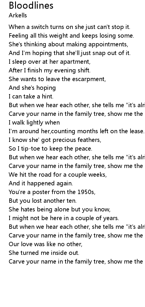 Carve your name in the family tree, show me the roots of your bloodline. |