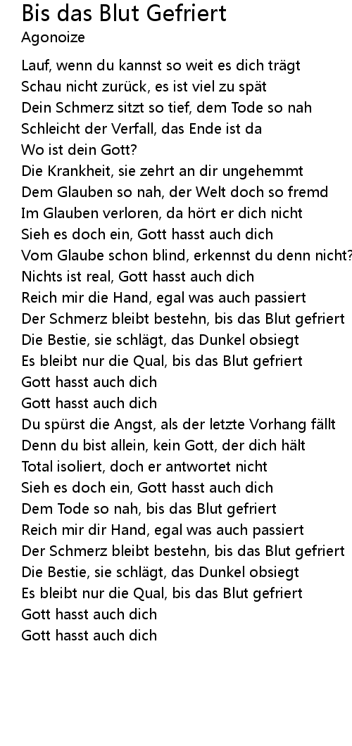 | Der Schmerz bleibt bestehn, bis das Blut gefriert | |