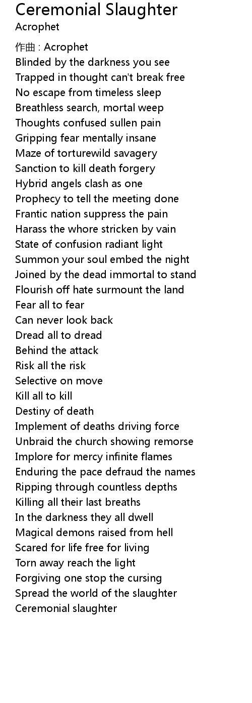 | 歌曲 | Ceremonial Slaughter |