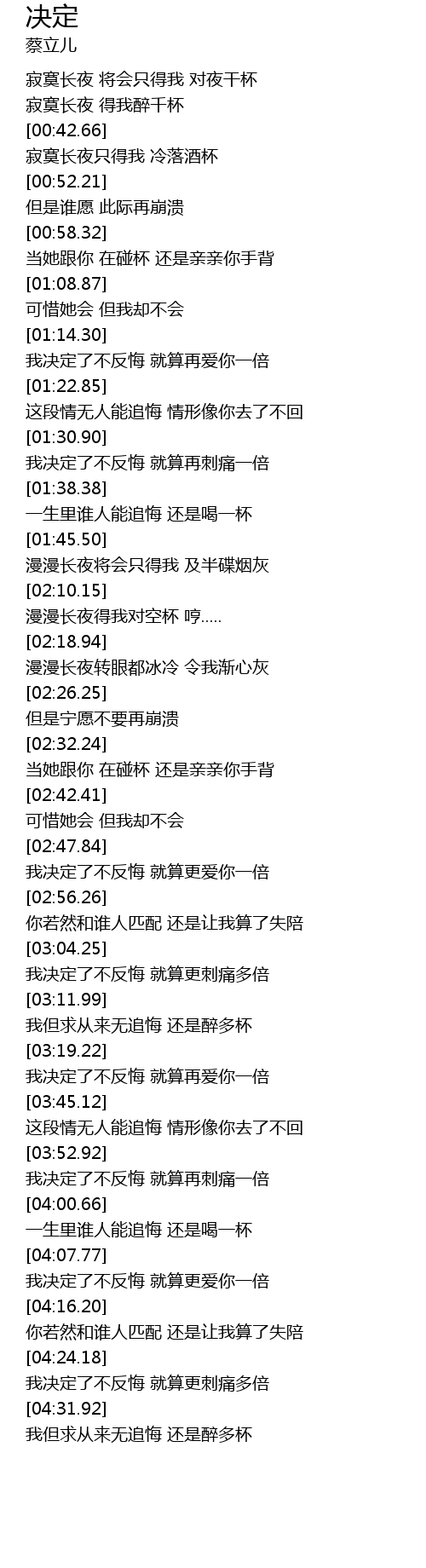 | [04:09.96] | 我决定了不反悔 就算更爱你一倍 |