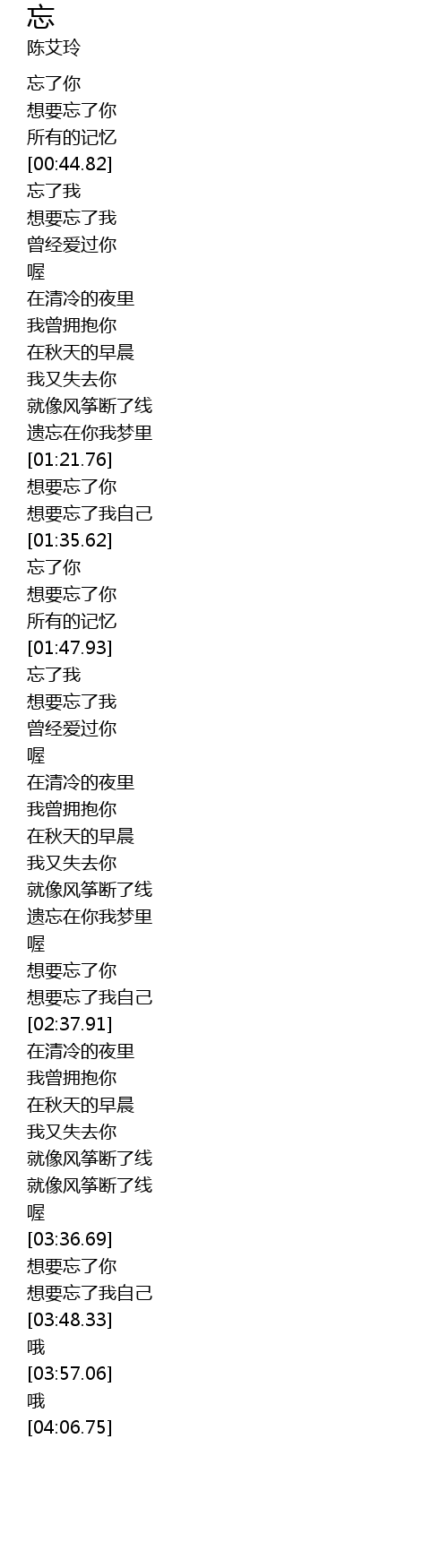 | [00:33.68] | wàng le nǐ |