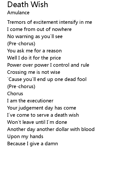| I ve come to serve a death wish | |