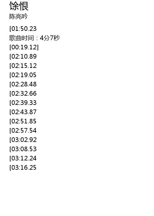| [01:20.73][02:51.85] | 不让馀恨留在人间 |