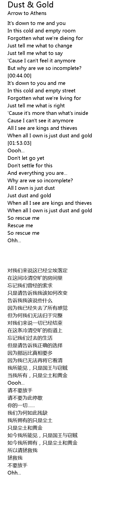 When all I own is just dust and gold |