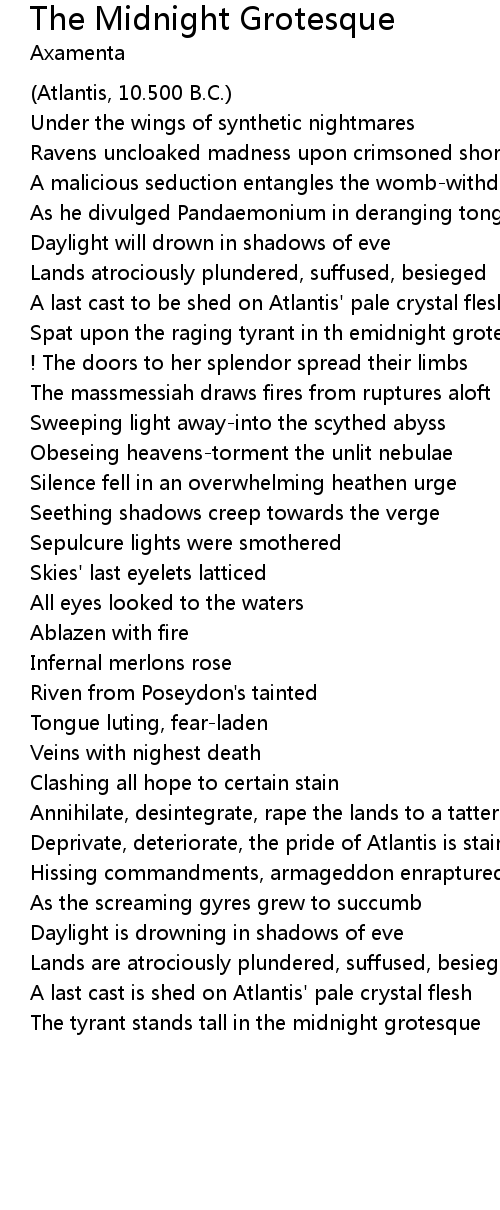 Spat upon the raging tyrant in th emidnight grotesque |