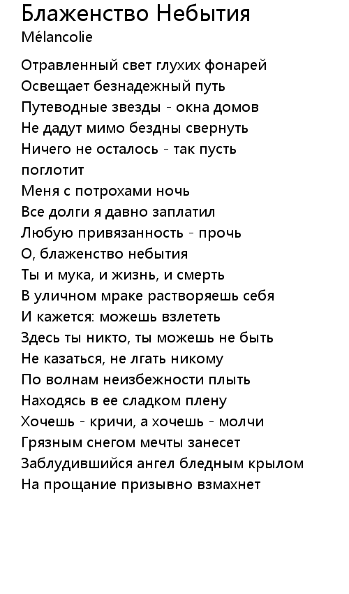 О, блаженство небытия |