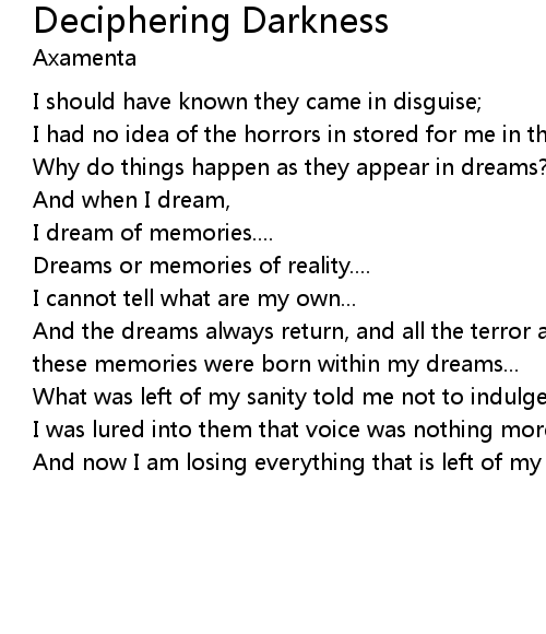 And the dreams always return, and all the terror and the evil that came with these memories were born within my dreams... |
