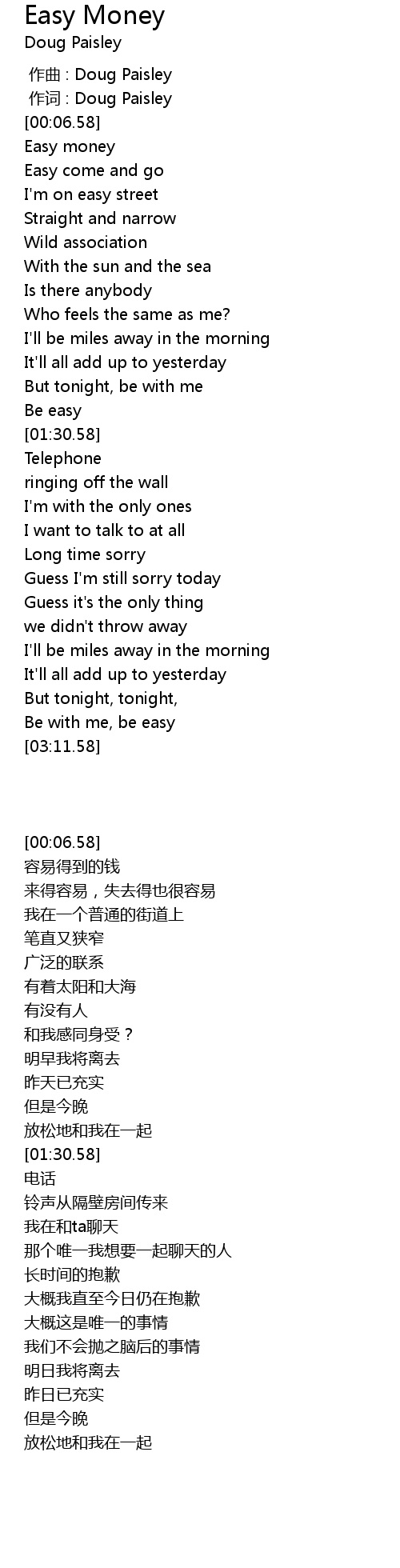 | [00:00.000] | zuò qǔ : Doug Paisley |