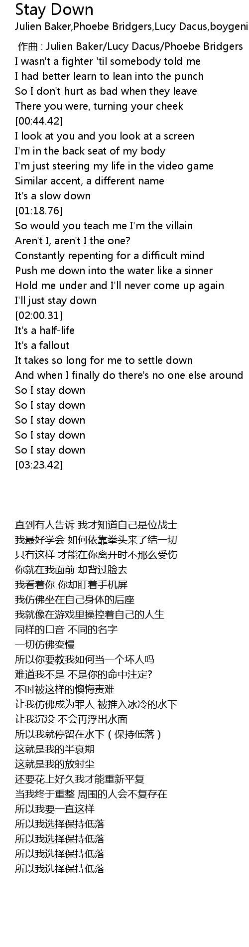 | [01:53.12] | 所以我就停留在水下(保持低落) |