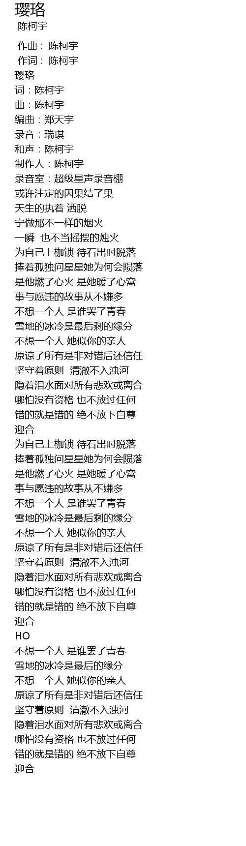 | [00:00.000] | 作曲 : 陈柯宇 |