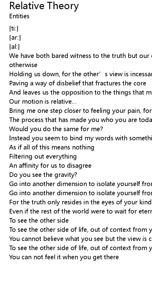 | [00:34.22] | Our motion is relative |