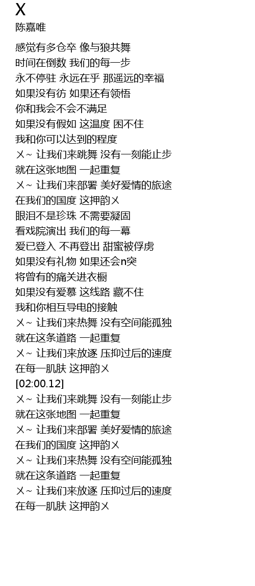 | [02:52.87] | ㄨ~ 让我们来热舞 没有空间能孤独 |