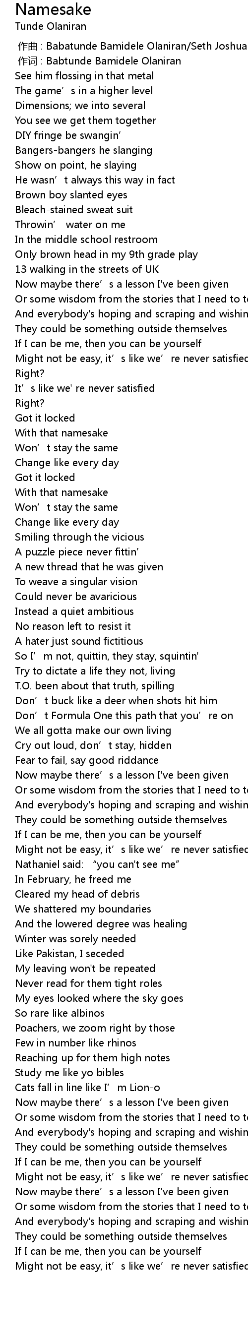 | [00:01.000] | 作词 : Babtunde Bamidele Olaniran |