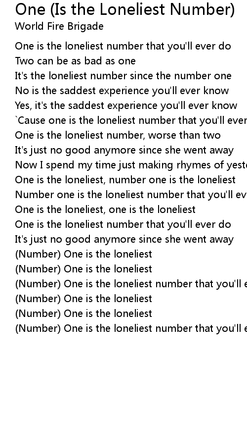 `Cause one is the loneliest number that you'll ever do