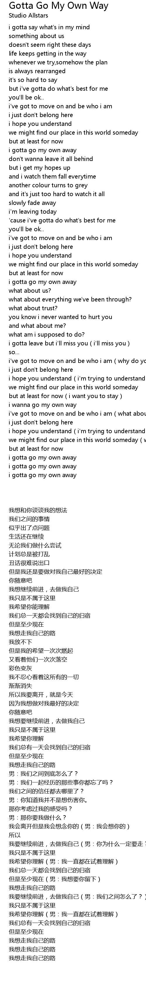 | [02:27.690] | i' ve got to move on and be who i am why do you have to go? |