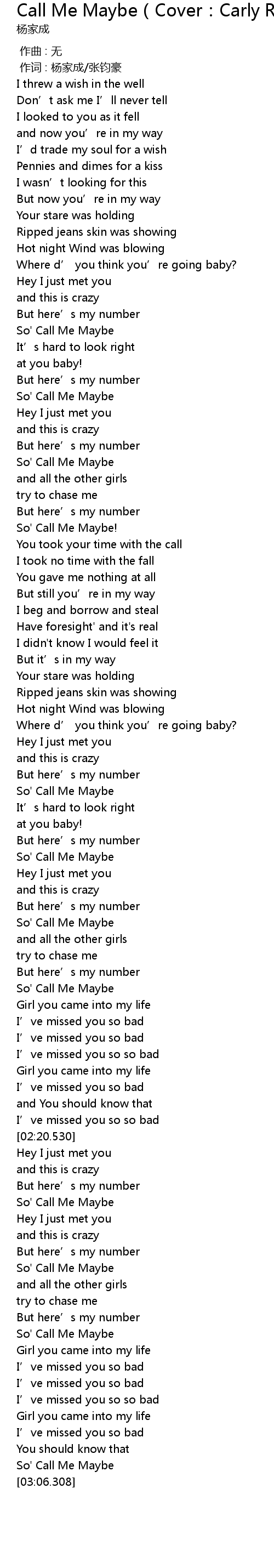 | [02:31.003] | So' Call Me Maybe |