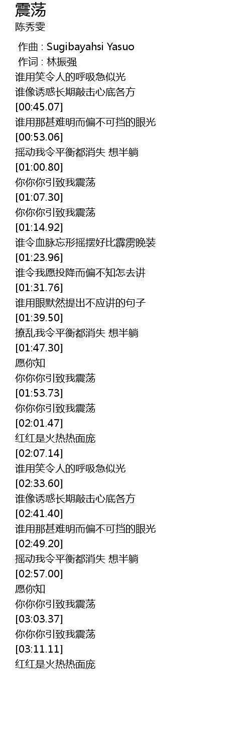 | [01:59.16] | nǐ nǐ nǐ yǐn zhì wǒ zhèn dàng |