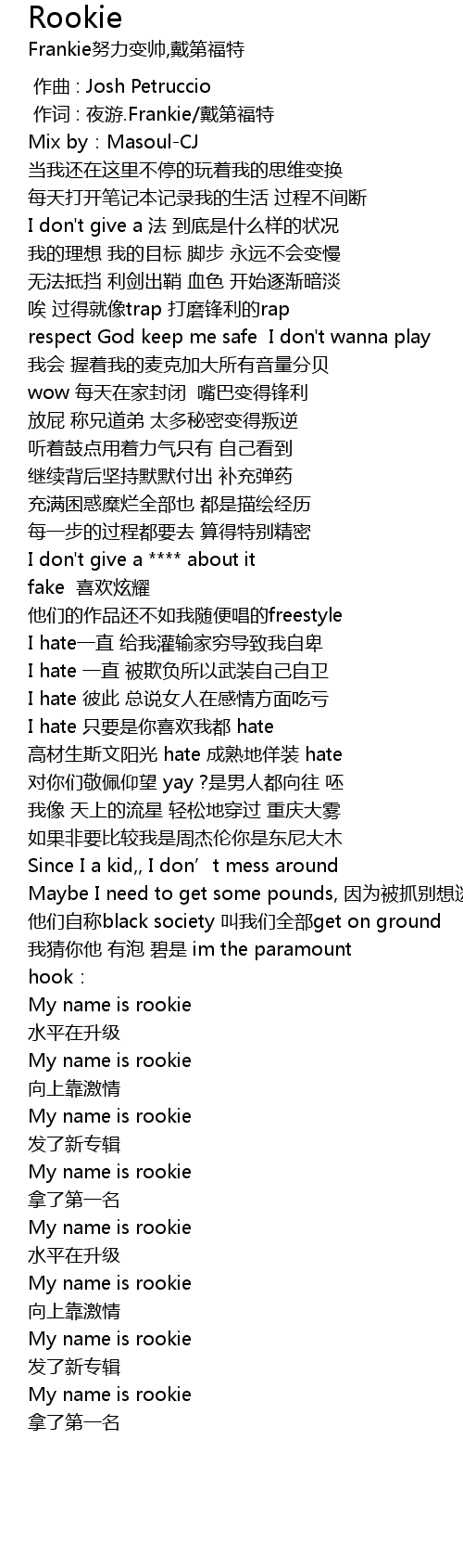 | [01:50.00] | My name is rookie |