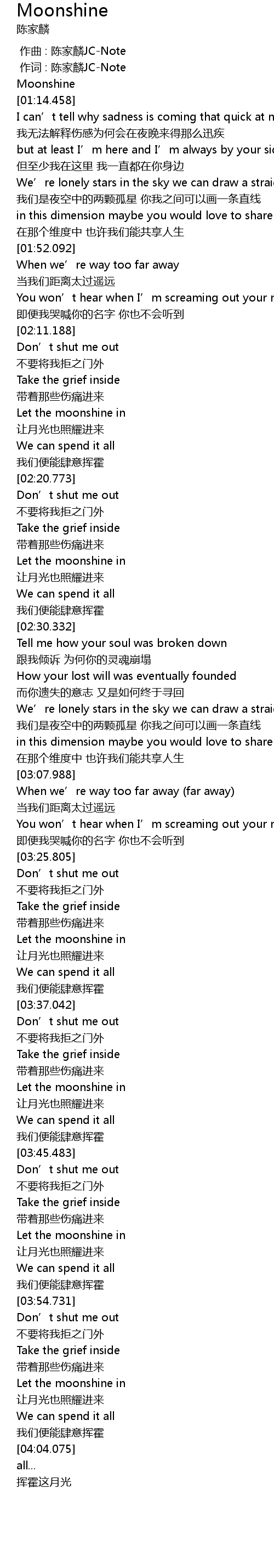 | [00:01.000] | 作词 : 陈家麟JC-Note |