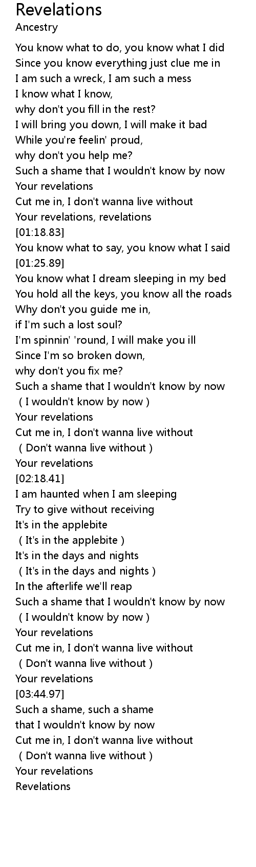 | [01:14.30] | Your revelations, revelations |